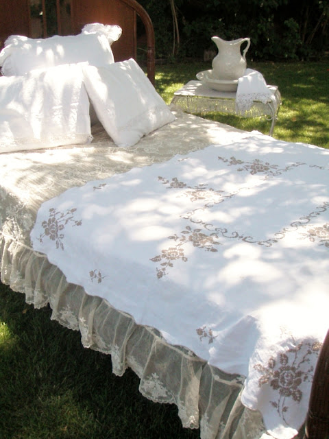 I was lucky to find a few small linens at the fleamarket recently for an amazing price! This hefty linen piece was the prizewinner at under three dollars. (The little doily was .50!)