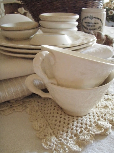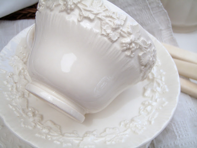 Embossed white china is always high on my list of delights as well, and I have a bit of a collection of mismatched pieces that I have accumulated over time.