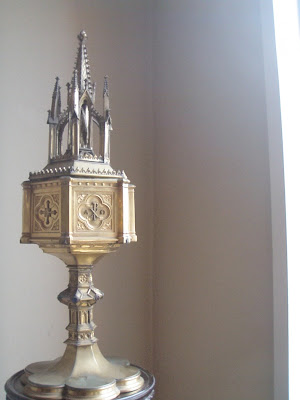 I was fascinated by the Gothic structure of this antique religious artifact on a pedestal.