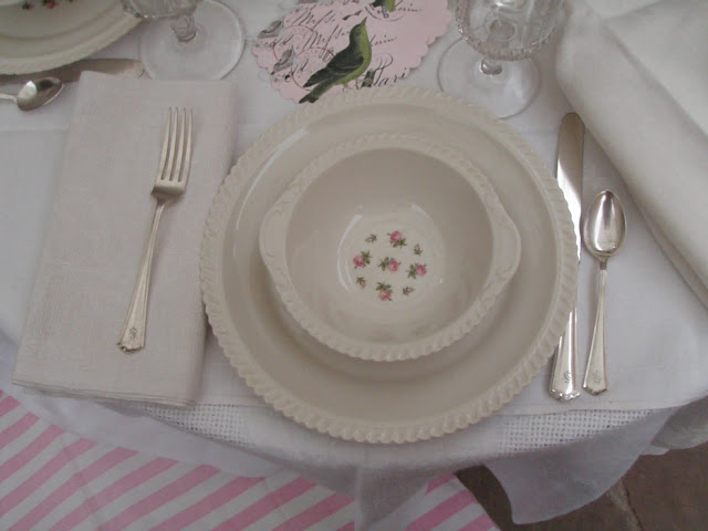It all looks lovely.. Your linens are fabulous.. I love the roses on the china. How fabulous. Your courtyard is amazing and I can just envision you spending countless evenings there. Or early mornings.. so fabulous. Many blessings, marlis