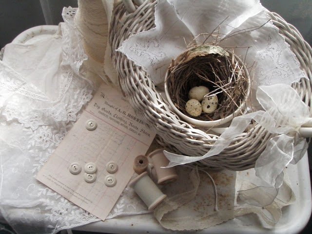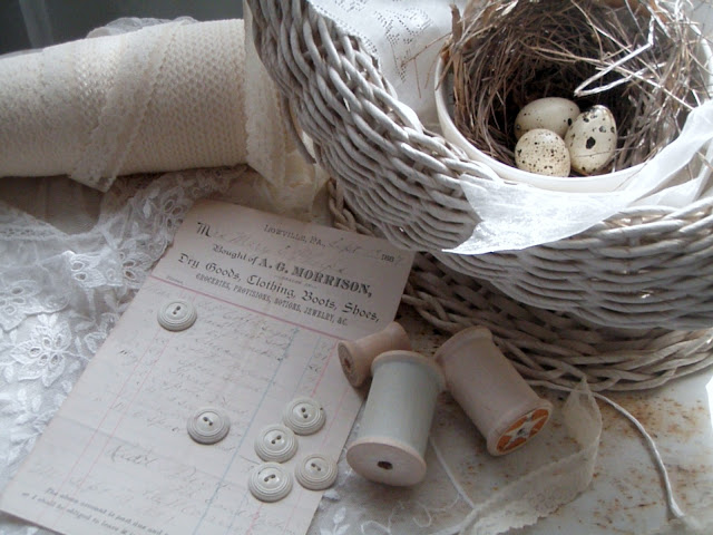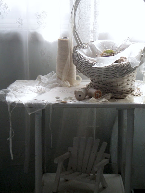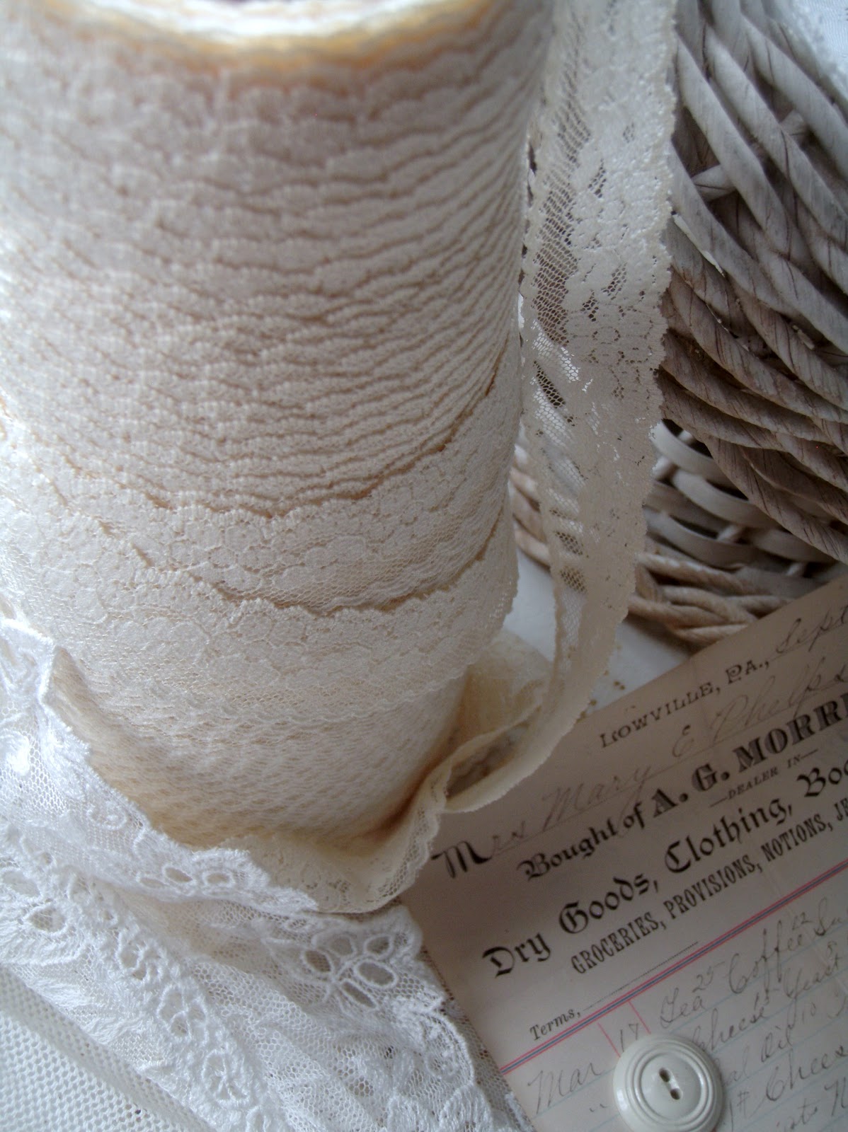 I love laces, crochet cottons, ribbons, and buttons...Including these simple notions in my space softens the edges of the day.