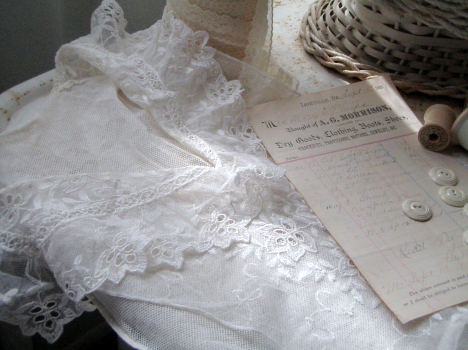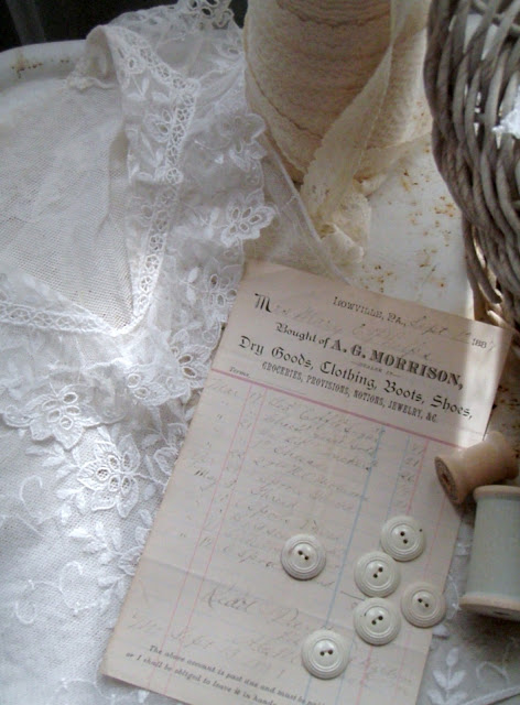 Love the lace & buttons! There is a nice country store at Sturbridge Village in Sturbridge, MA. It's a working museum in western MA that is very realistic. Have a good day! Luanne