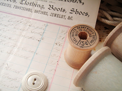Your post has the wonderful feeling of nostalgia along with a few of my favorite things...vintage paper, buttons and spools :)