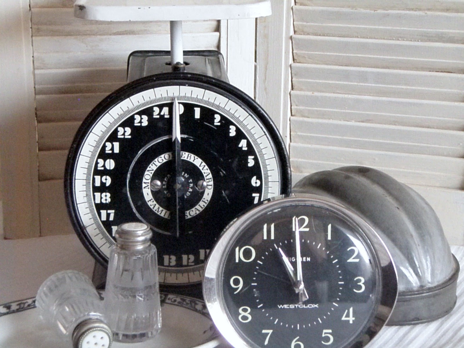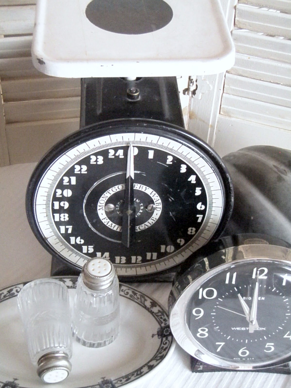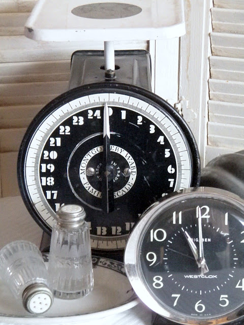 What GREAT finds from the weekend. I've never seen a black and white scale like that....very cool! And those shakers are beautiful. Sounds like a fun weekend to me!