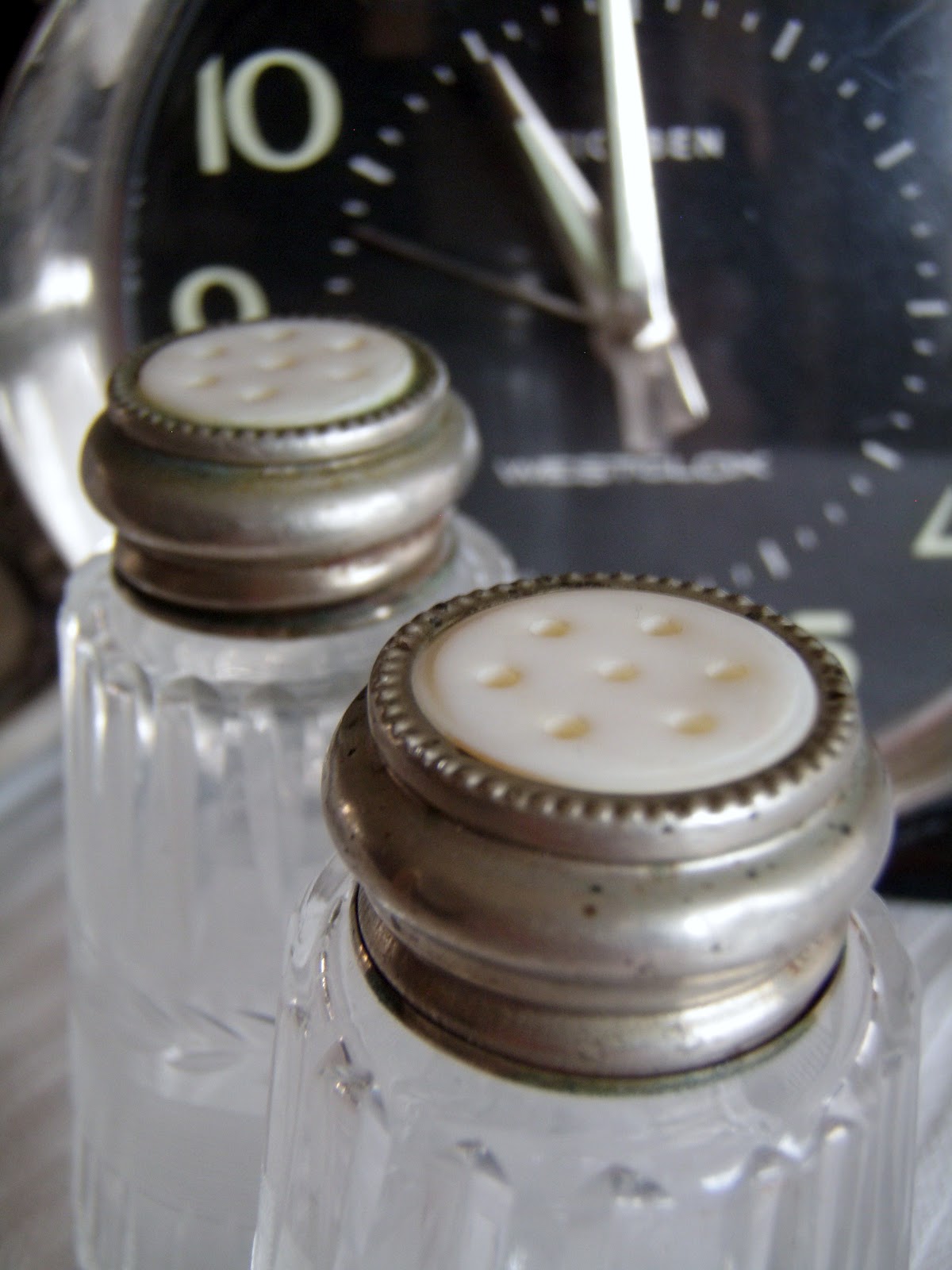 Those button top shakers with a Big Ben by Westclock. Tick tock.