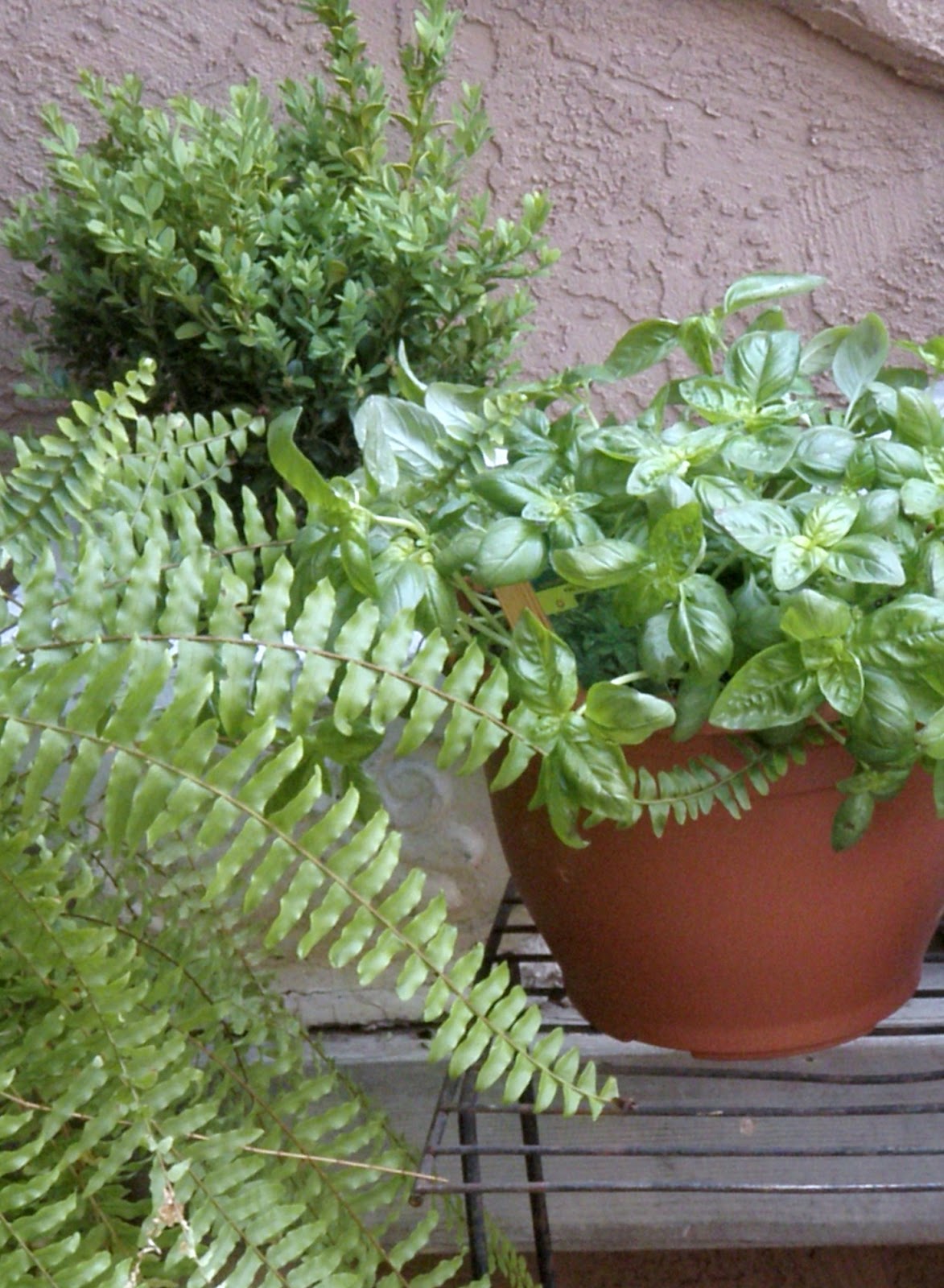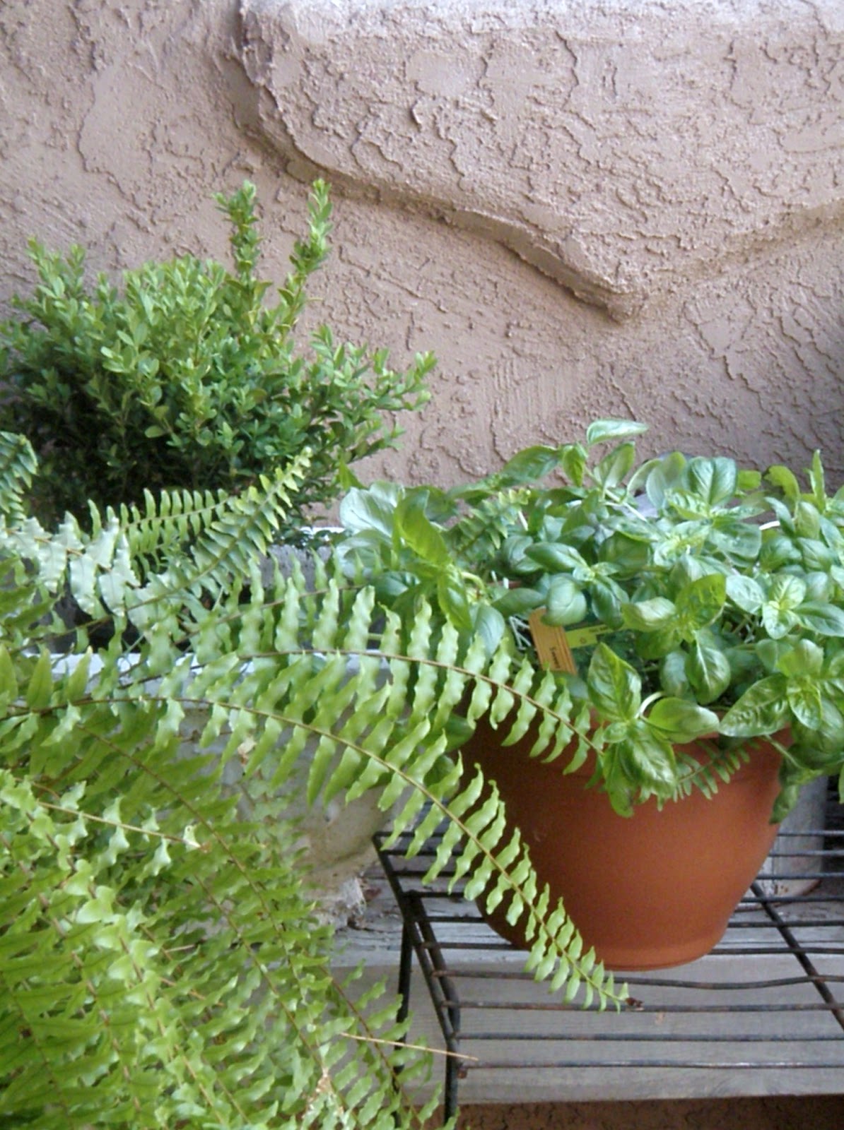 We are in process of the annual ritual of bringing out plants from indoors, and replacing the potted herbs. Lots of weekend visits to the nursery to dress up the skeletal garden artifacts.