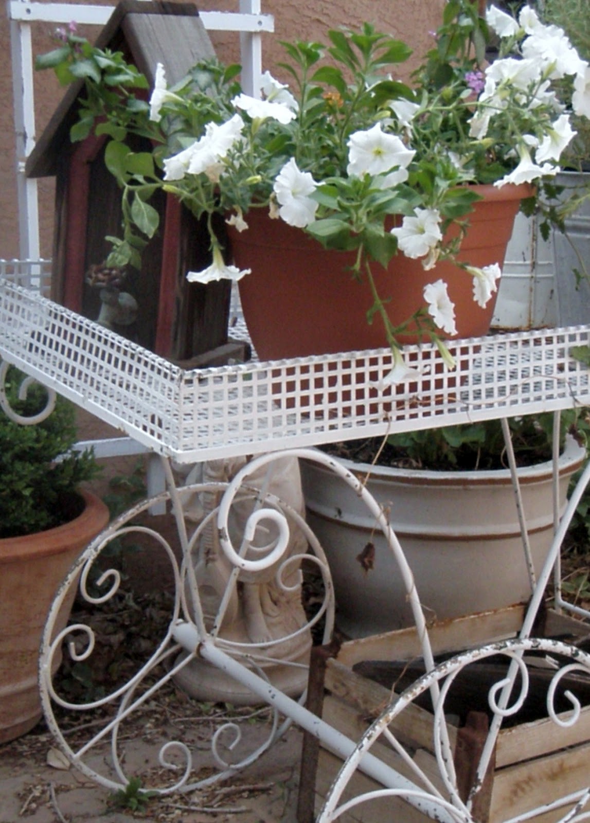 It's always relaxing to come here and now to visit your spring patio is pure pleasure. I love the shabby, rusted pieces the best and anything iron, paint chipping. Wonderful.