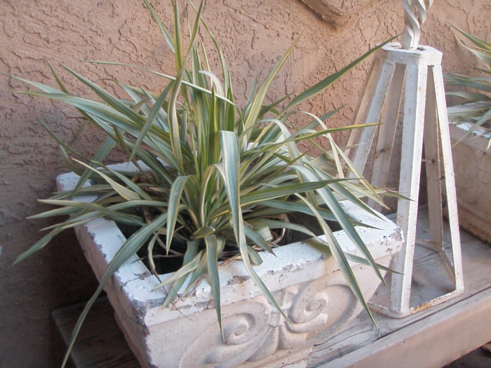 Your fountain piece with dolphin reminds me of Italian fountains in the squares there. I think your plants in the two square concrete planters may be dracena. I have planted so much I have nary a planter left to fill and every muscle is tired and sore.