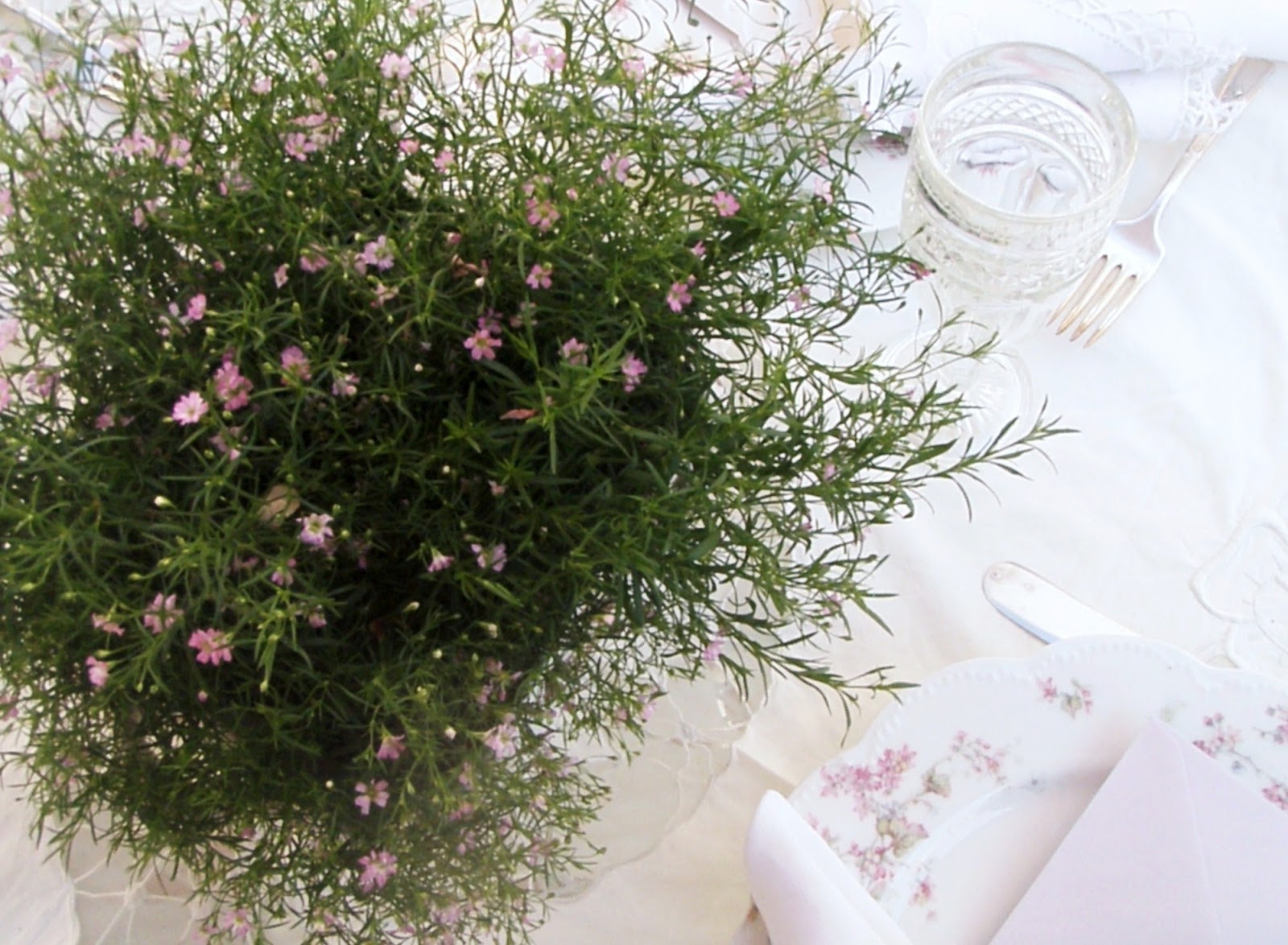 What a beautiful, tranquil and artistic table setting! I love the plates, the Baby's Breath, in fact, everything..