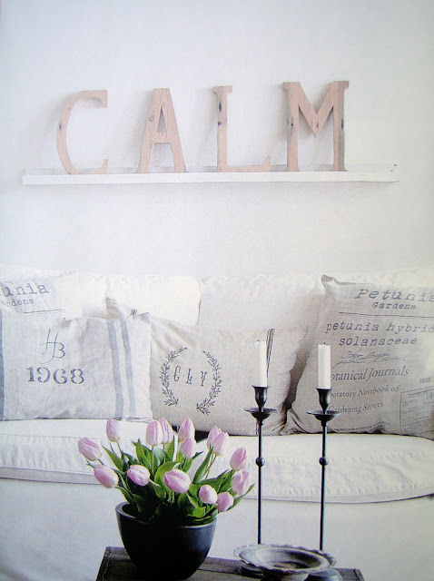 Love the distressed letters CALM in pink! The entire blog makes me feel calm and serene.