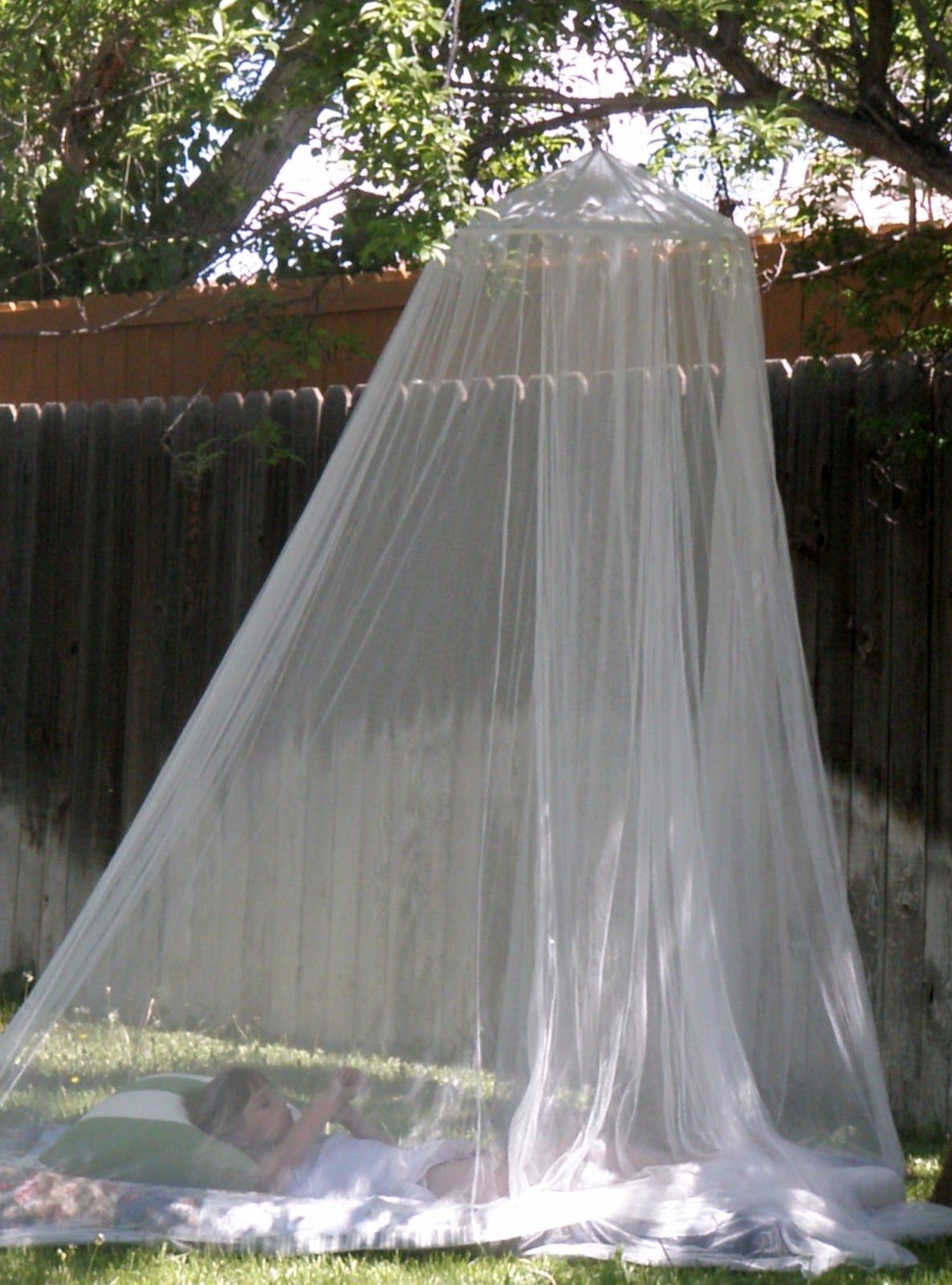 Gotta love those cherry trees! It looks like the ideal day of lounging, and daydreaming.... I have one of those nets like Maia, I am not afraid of bugs, I just wanna be a princess :-) I love her little nest :-)