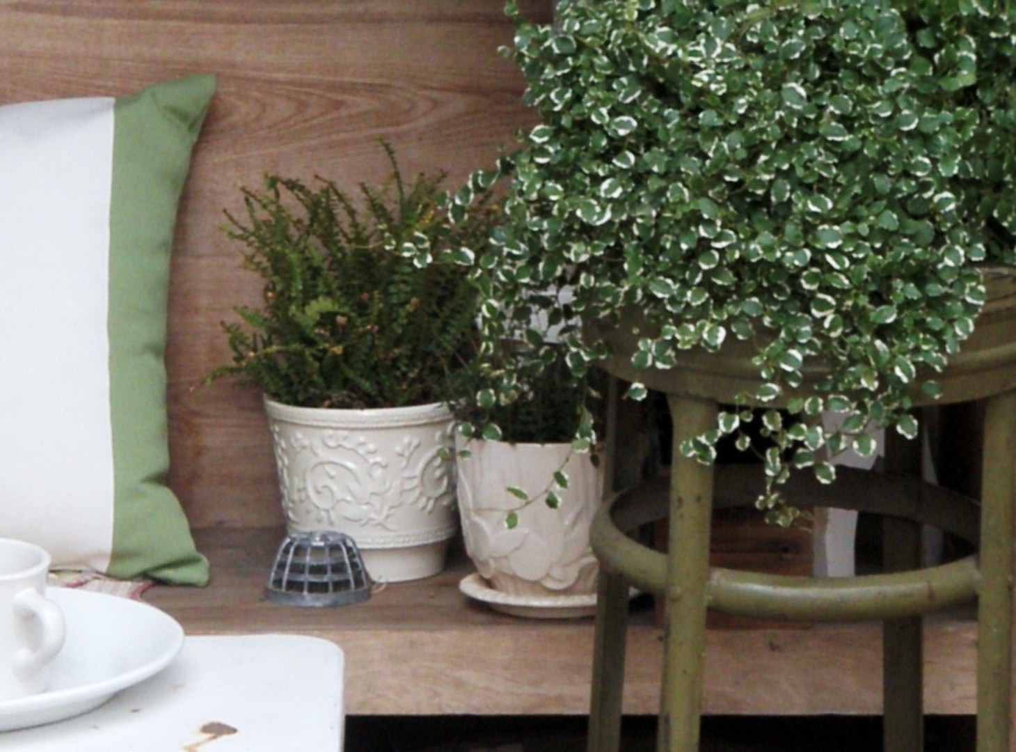 Your theme of green and white on your veranda is lovely. It makes me want to be there and gave me some ideas on what to do with mine.