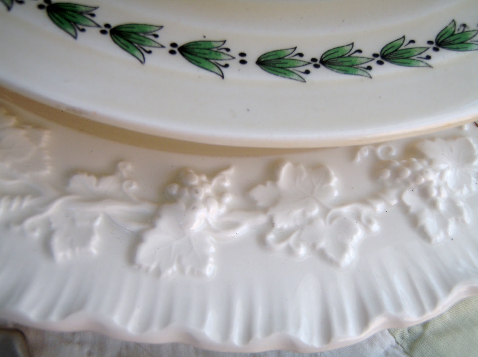 White and cream plates with just a touch of leafy green keep the elements soft. I've mixed the flatware to keep it interesting.