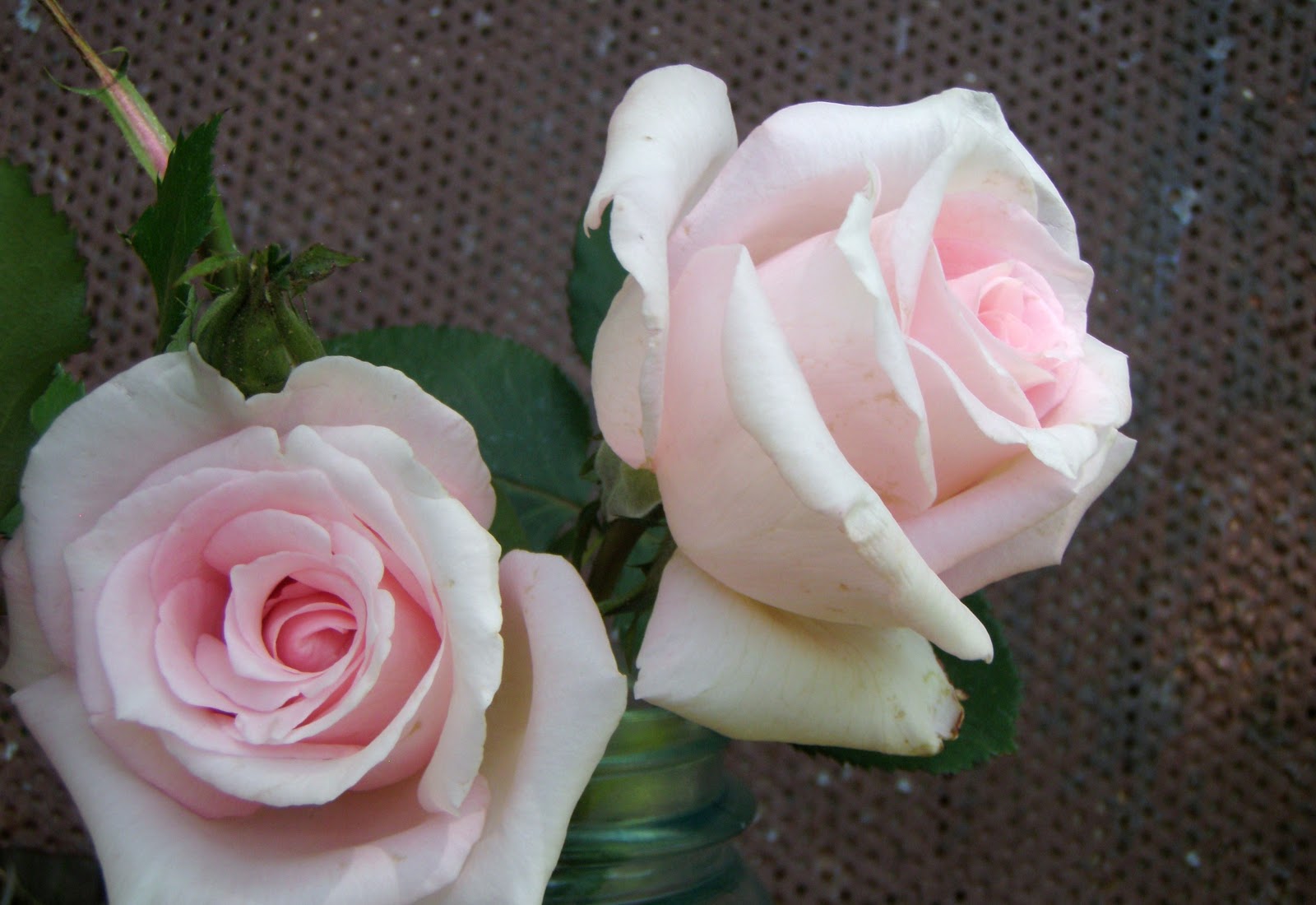 These two blooms broke off on the trip home, so they get to be our first cut roses of the season.