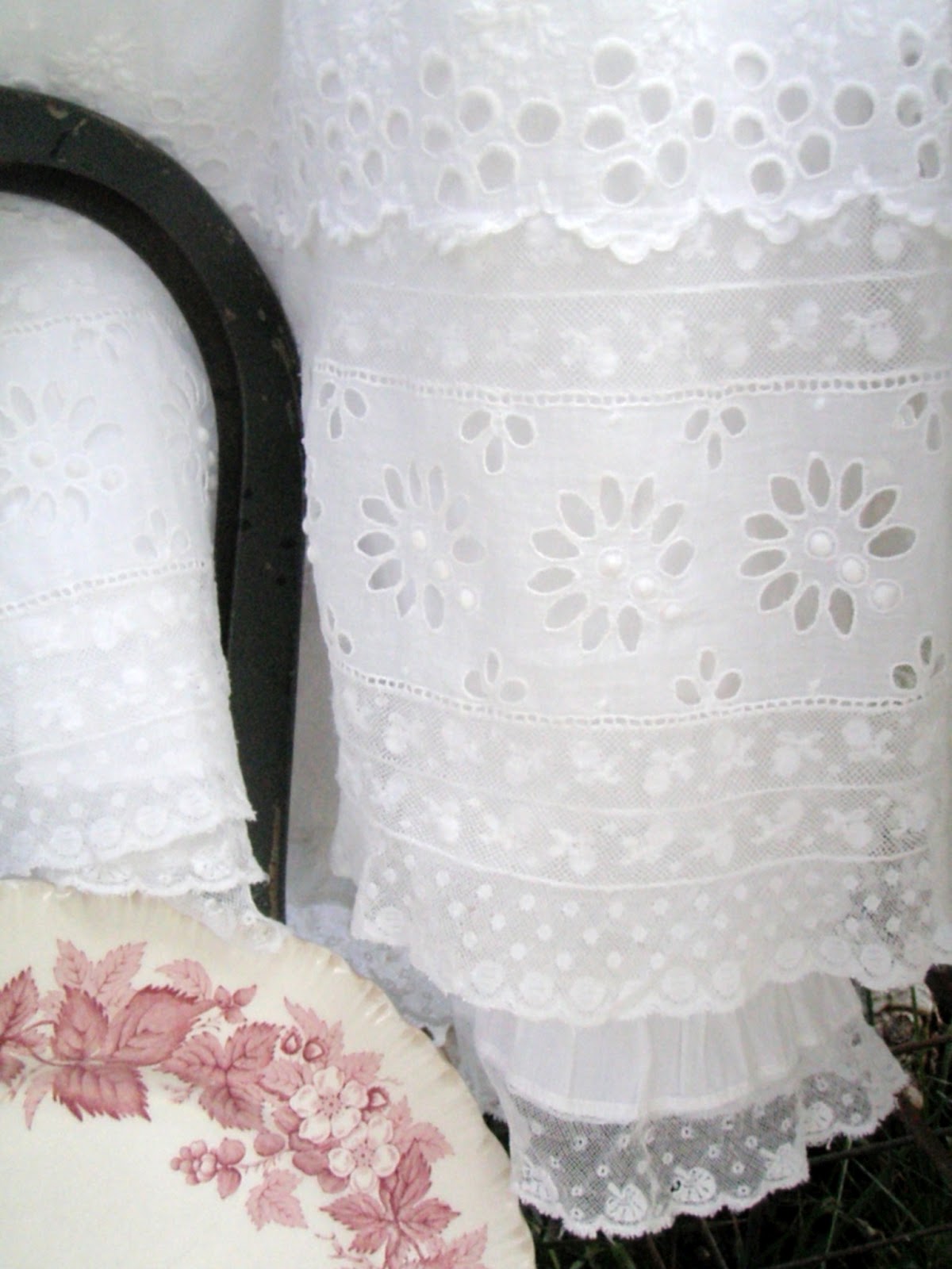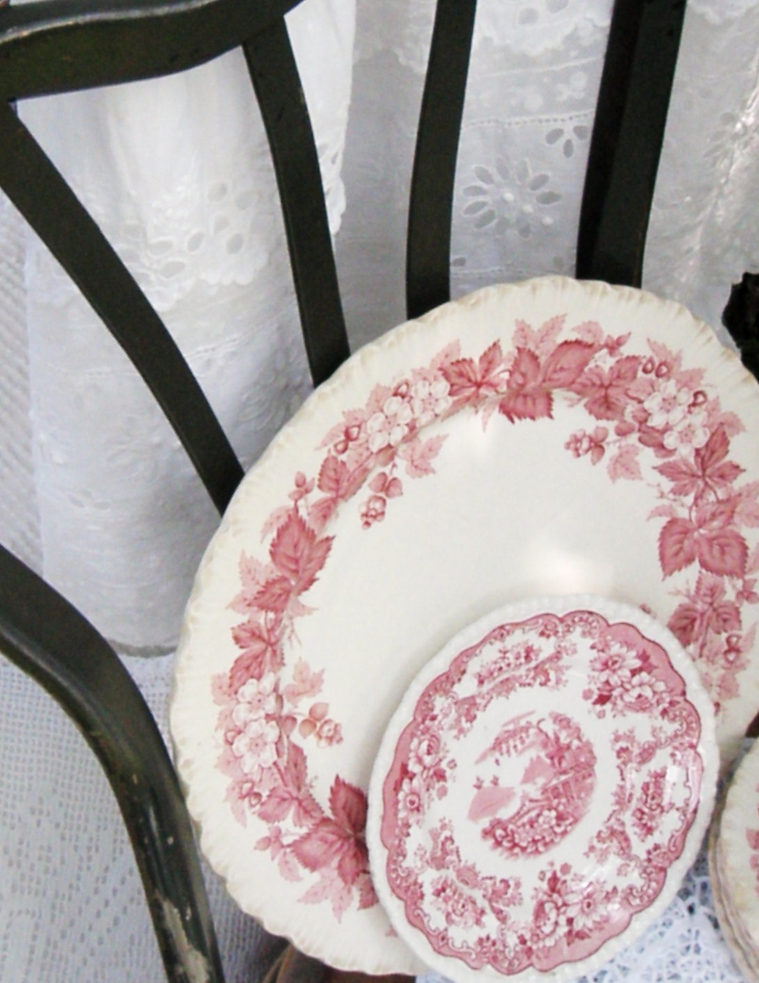 How beautiful, Jacqueline! The eyelet is exquisite! Love all of the wonderful transferware and linens!