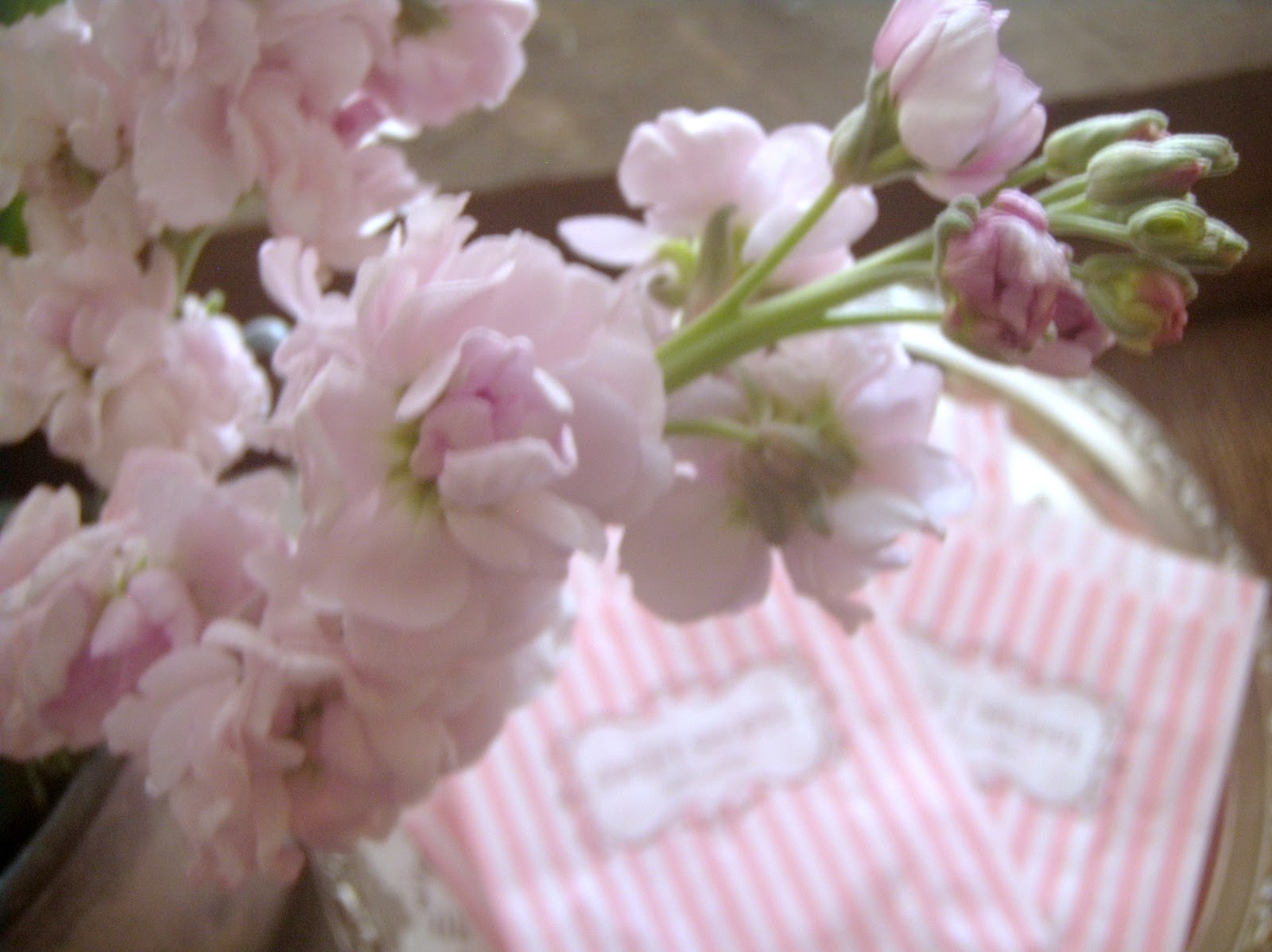 Ruffly pink blooms and sweets from the sweet shoppe. . . .