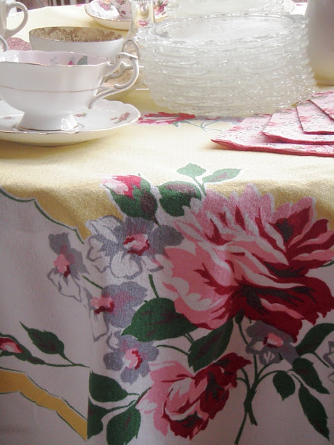Rose strewn china and linen helps extend the blooming season!