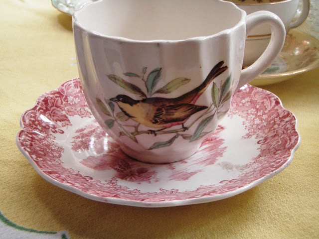 ReplyDeleteYour roses and china and rses tablecloth and everything is so so beautiful - but I couldn't take my eye off of your BIRDIE TEACUP!