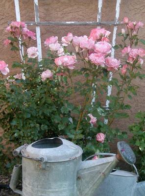 You could post roses everyday...and everyday, I'd come visit you!!! These are stunning! I adore the yellow in your vintage tablecloth! Not quite ready for Summer here on the Prairie...although its already raring its head. Everything is coming about two weeks earlier this year. Ready of not...