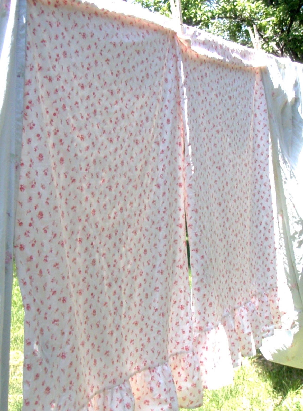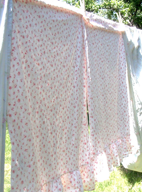Your new roses blooming are most lovely, and your linen on the line. Happy days.