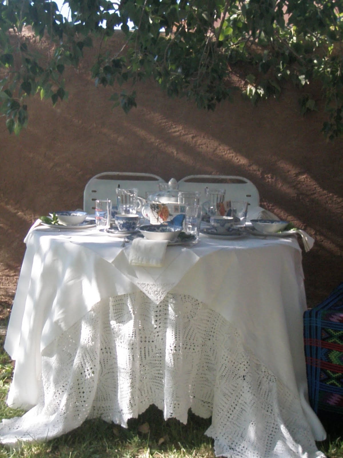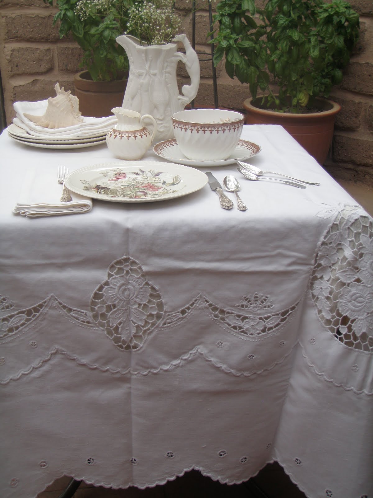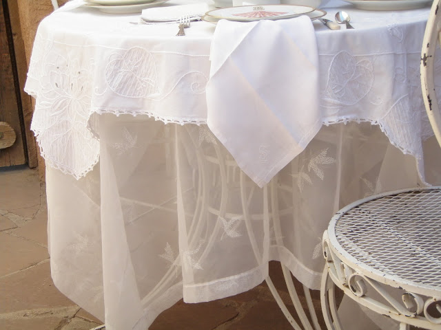 You must have half a dozen patios. Which is wonderful for us and you. The more tables dressed with vintage linens the better.
