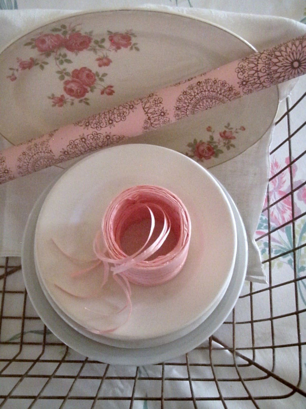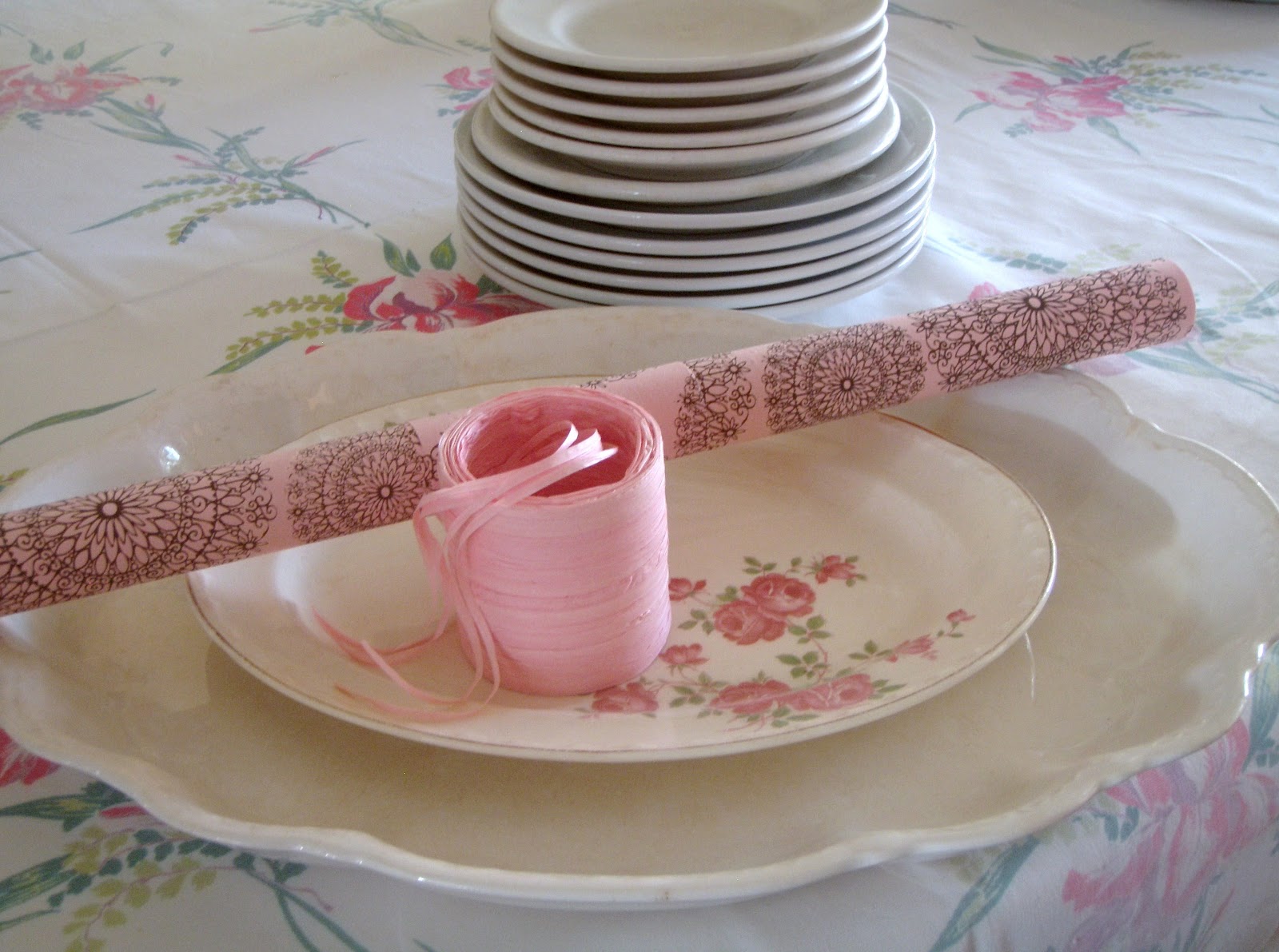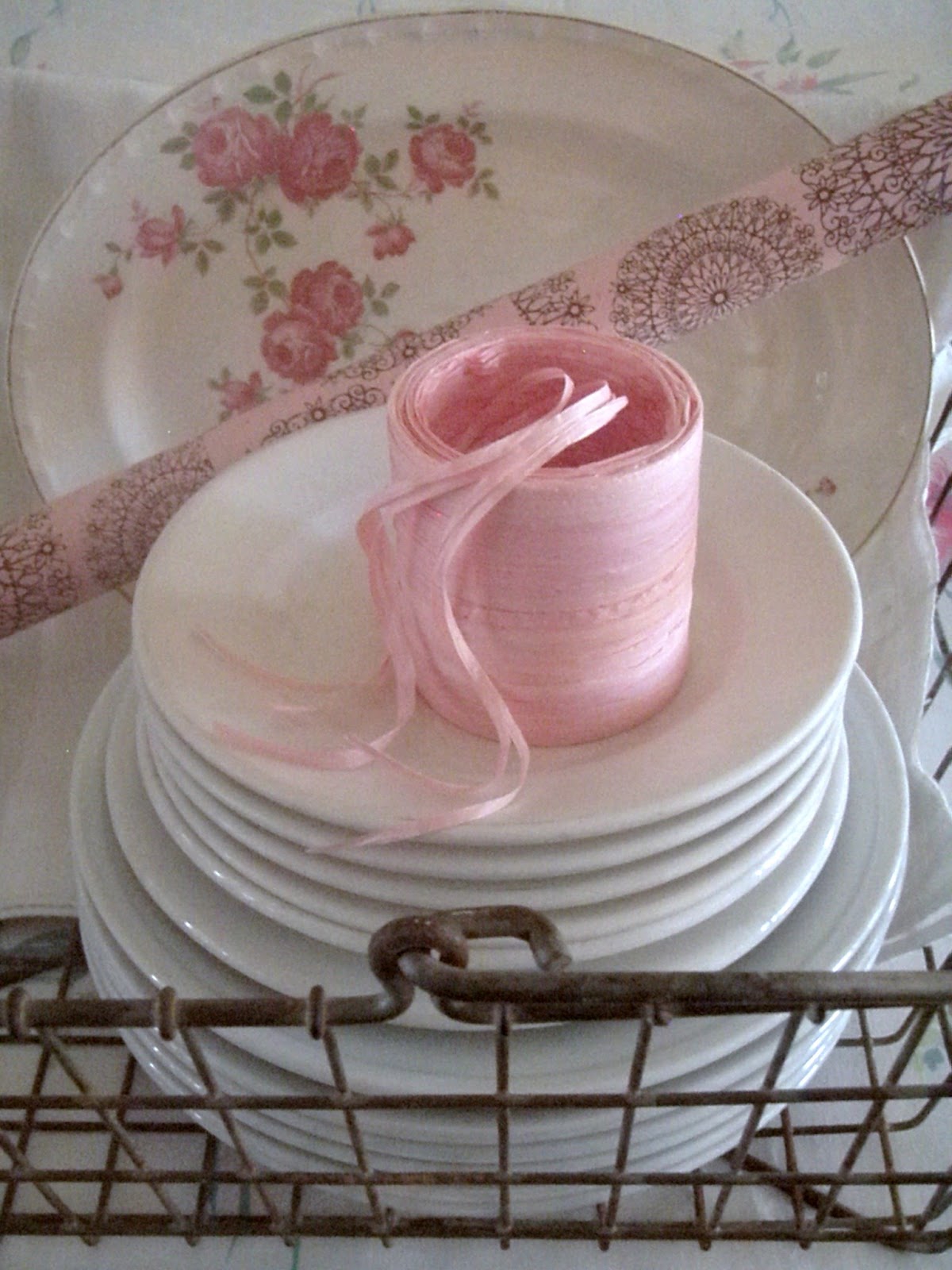 oh i love your ironstone plates!! You could never have enough of them! They look so pretty with your pink plates.
