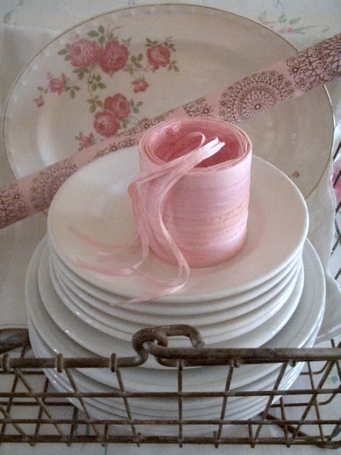 Oh! Love, love, love the basket, and the dishes, and the tablecloth!!! All things I have a thing for! Lucky you, finding the dishes like that. I, too, have an eensy kitchen and wonder all the time where to put more pretties. Have a lovely week!Kay