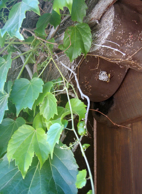 This patient mother was already banished from our other patio recently. Even wasps have to find a place to live. But she picks all the best ones!