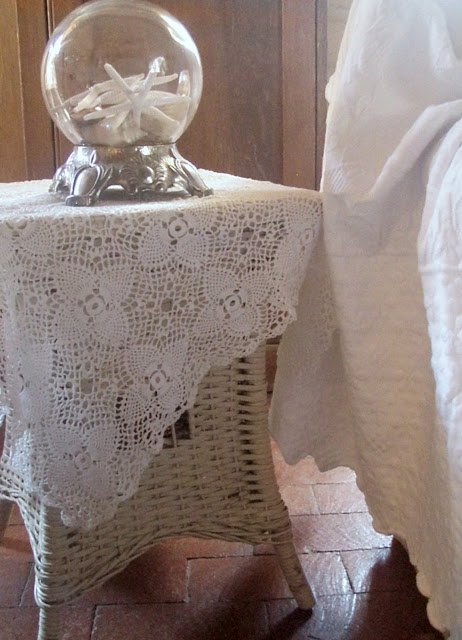 So beautiful! It looks like the perfect place to sit back, relax, and read a book. Your photography is beautiful. I love the wicker and lace. The sea shells are so pretty too! ~ Jamie