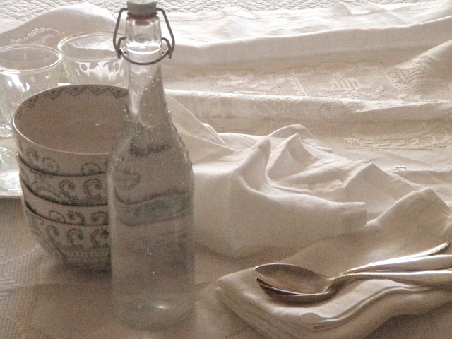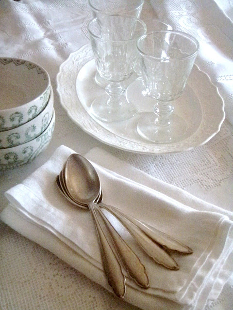 Oh, the spoons! So beautiful in their simplicity. And the green pattern of the bowls ... so pretty. Don't think I've ever seen that before. I love the way you arrange everything!