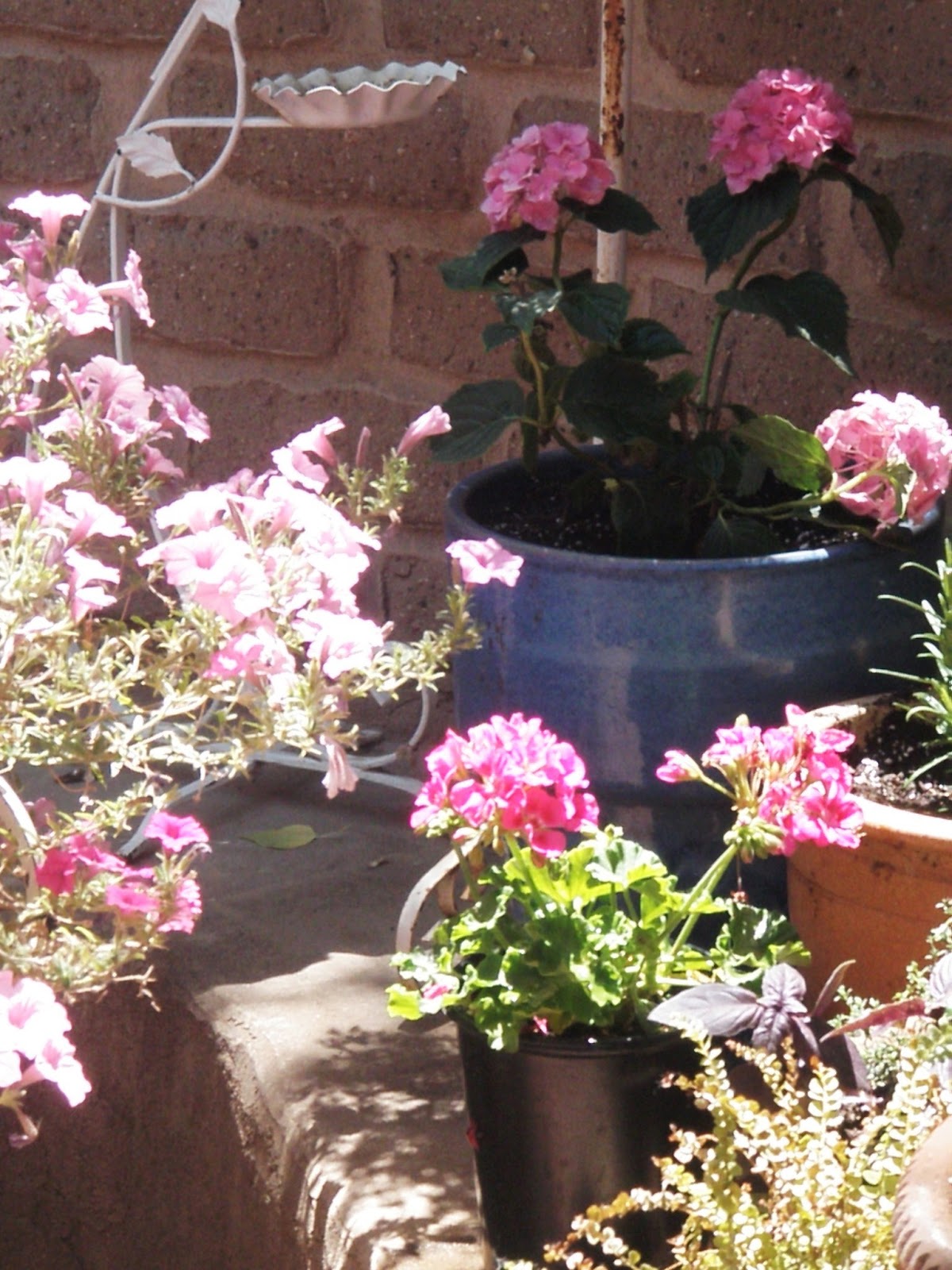 ReplyDeleteWhen i saw that first photo thumbnail on my sidebar, i thought it was an impressionistic painting! You're doing pretty well on your little patio with the dry air and direct sun! The pinks are all so pretty, especially that sweet hydrangea...