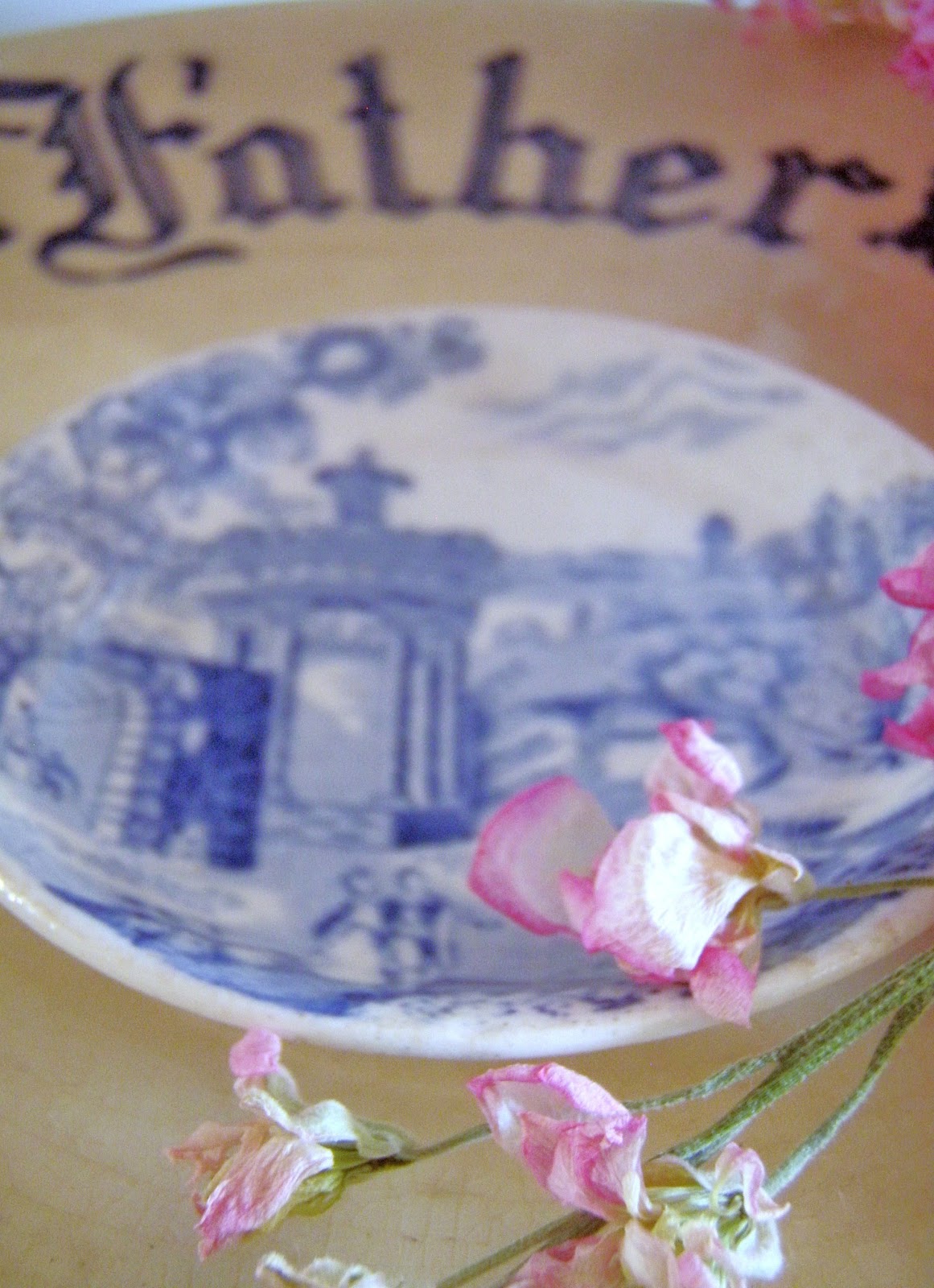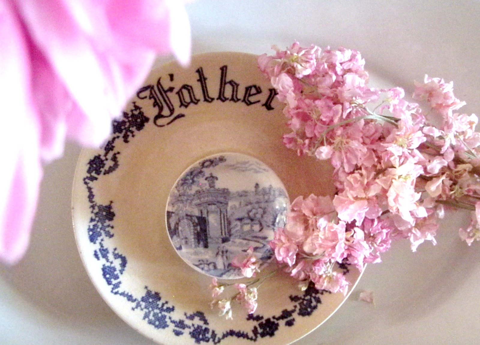 The stripes, soft blues, roses, and then just the right Father plate. Perfect All.