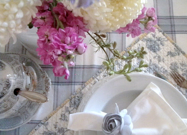 I've obviously been focused on blues of late too ~ French Blues and Bay House Blues. ;-) So this table is definitely making me smile. Beautiful flowers and dishes. I love the way you capture the special details in your images. Very artistic, as if these are exquisite oil paintings.