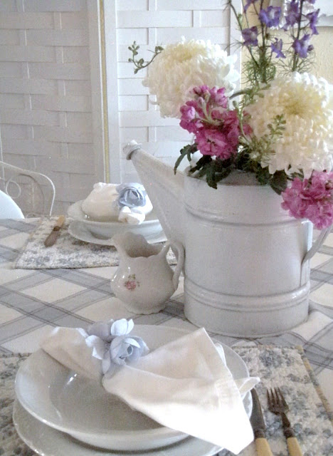 Like ALWAYS your table is beautiful, from the soft plaid tablecloth, to the amazing tureen! Your soft blue tablescapes always inspire me to love blue a little.