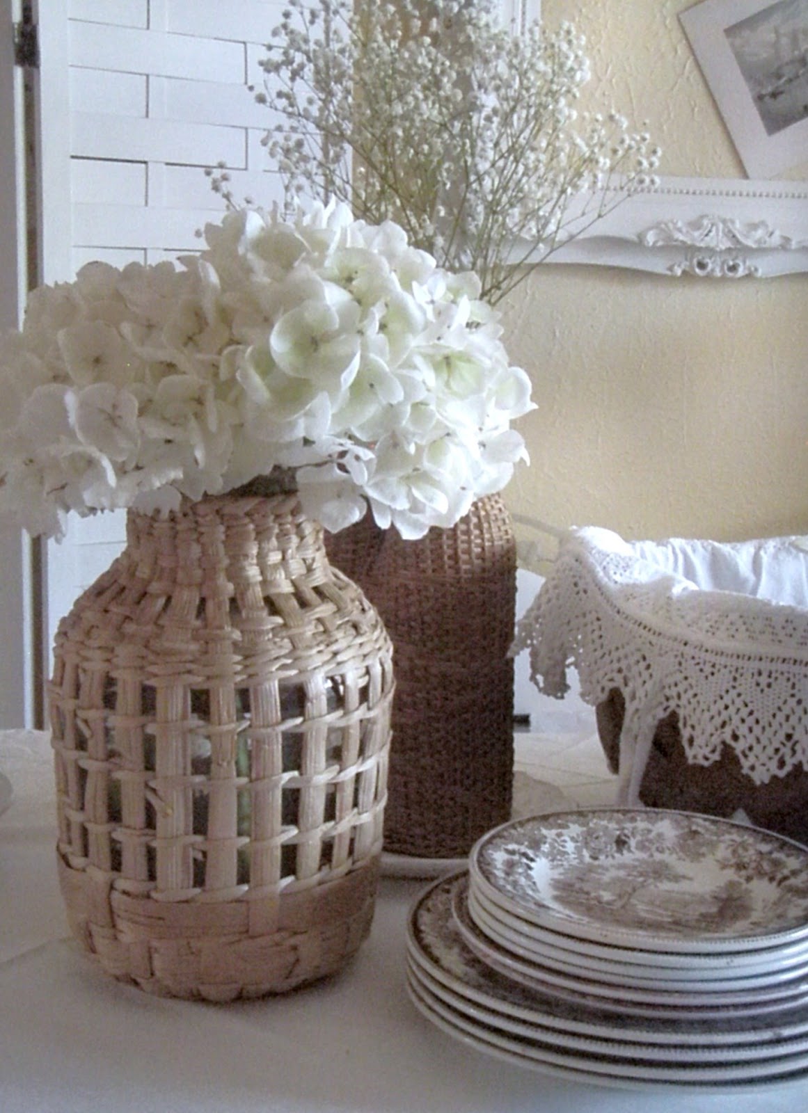 Your wicker bottles are beautiful. Love the neutral tones and texture they bring to your table. You've done a terrific job at lightening up your dining room.