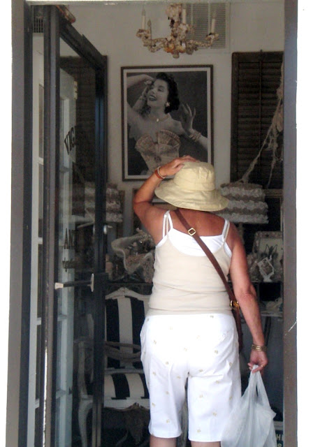 Good grief!? I'm hyperventilating just looking at these photos, Jacqueline. How did you ever manage to drag yourself out of that lovely shop?? Those French white cane chairs... those soft off the shoulder blouses... *sigh* Just so lovely. What a beautiful place.
