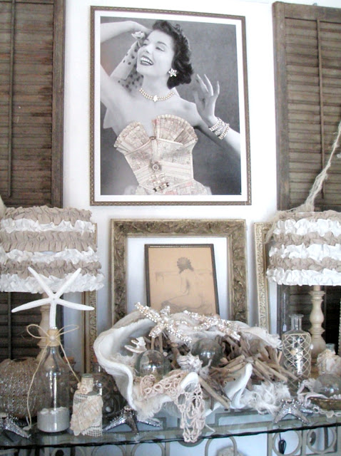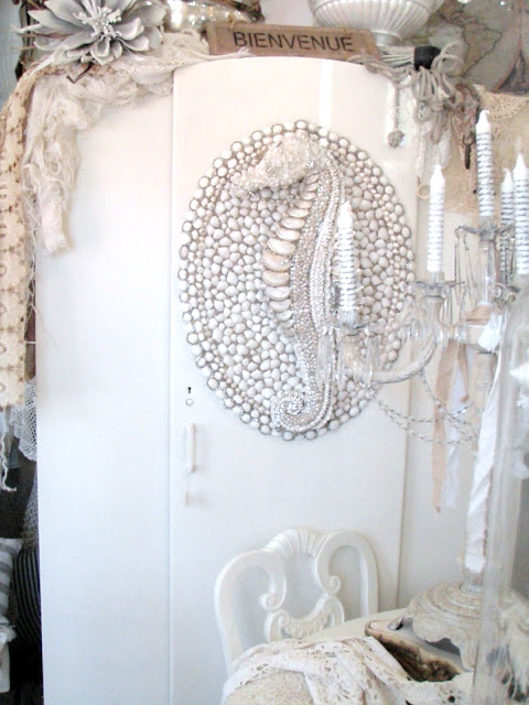 Wow...I wish I lived in San Diego so I could go there! Everything is just beautiful...I can't honestly pick a favorite photo. I was drooling over all those beautiful chandeliers and light fixtures and the pile of lacy crocheted pillows....then I saw the seahorse made of shells! Beautiful! That might be my favorite!