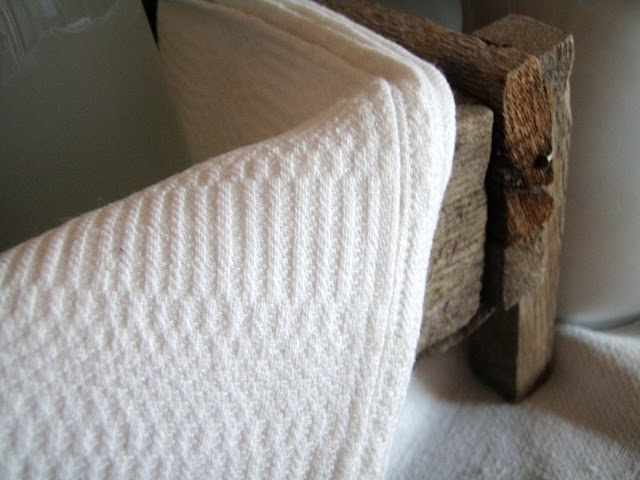 In fact there are many things here that way. I love the old cloth precisely because of the darns, patches, and wear on it. The linens had a tea stained look when I acquired them which I find beautiful, but for the table I also need everything looking fresh, so I gave them a long soak overnight. I'm so pleased with the result!