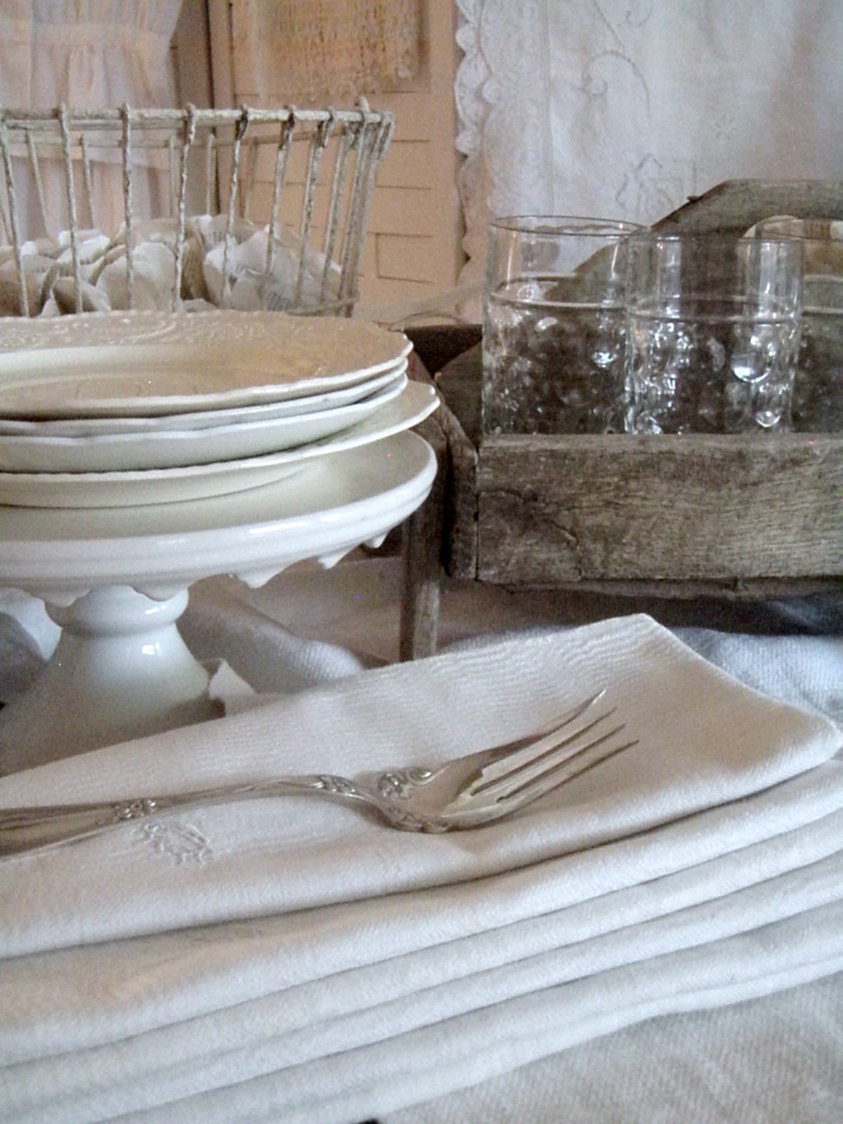 A lovely post. I especially love the jux of the old crate against linens and the silver fork. Beautiful. Hope you have a restful holiday weekend.