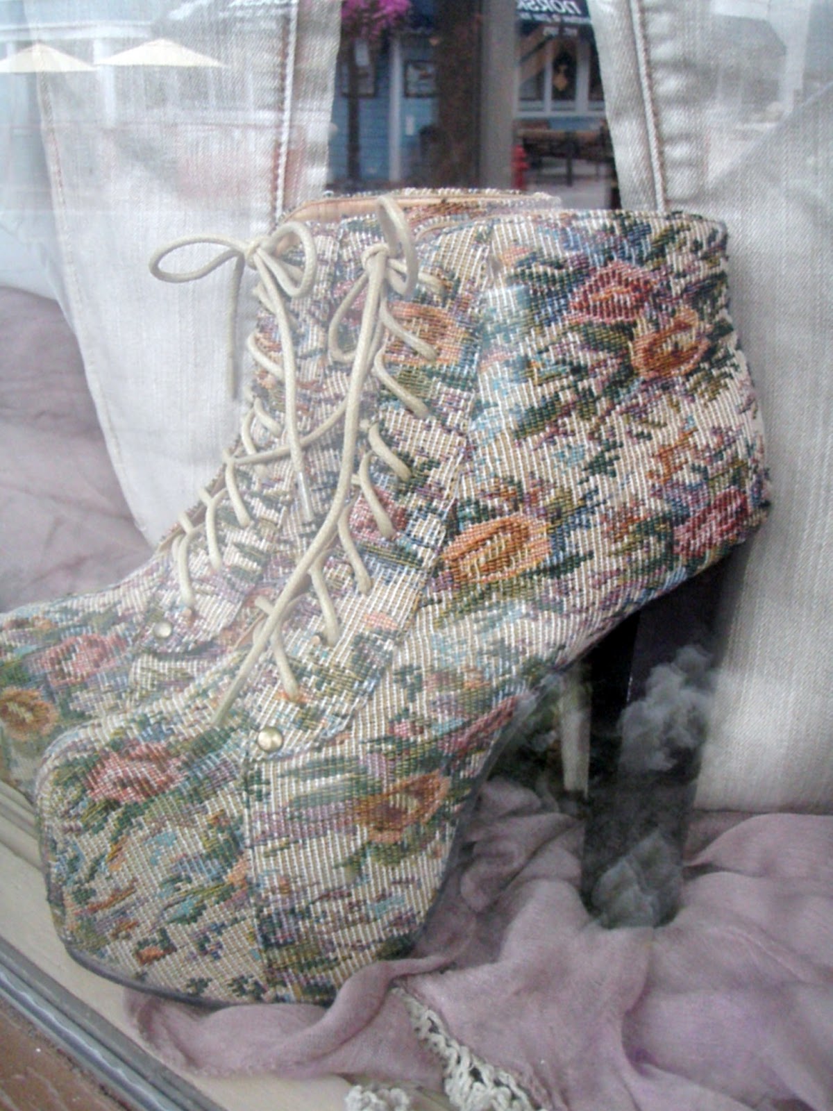 Something to catch your eye in every window, and this time of year a different kind of footwear than snow boots!