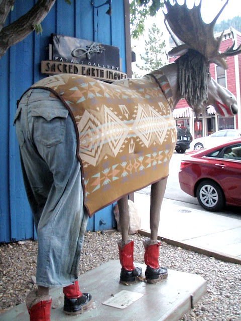 What a neat town to visit! I love the flowers in the planters and the funny moose with it's stylish boots and jeans! I think it's great that places like this have been kept up.