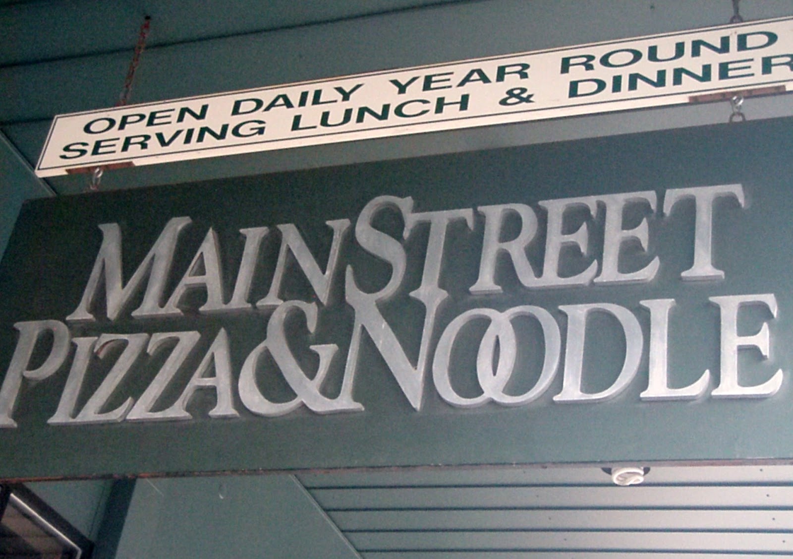 The Pizza and Noodle joint is so popular it overflows into the street. . . .