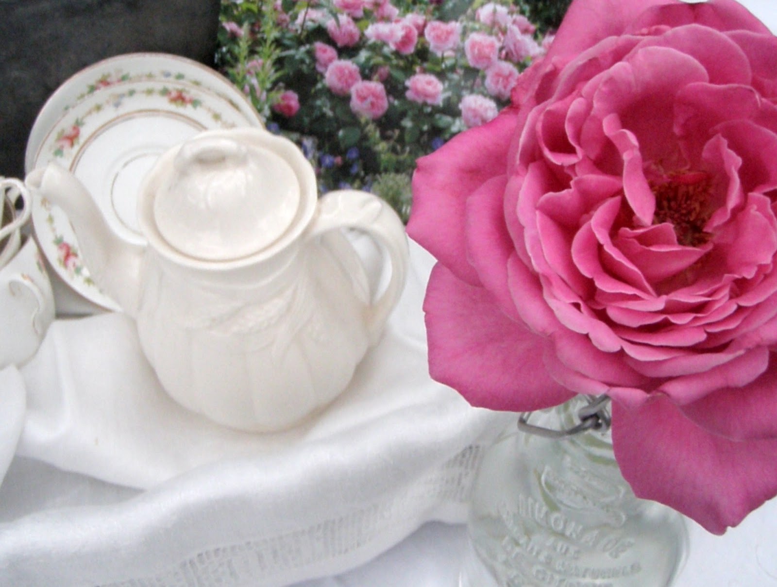 Lovely, Jacqueline! So glad you were able to enjoy such a lovely summer's afternoon. That rose is so beautiful, and the rose prints and china are the perfect accompaniment. Take care!