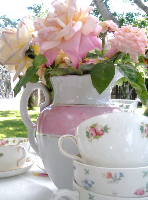 Oh my dear, how I adore the pastel shades of your china collection and your table layout is impeccable. It's perfectly romantic. It's like a dream vision and I thought I would be seeing a white rabbit in his waistcoat popping out at any minute, running late to attend a garden party and then he would take me down to a wonderland - a magical land...the land of Cabin & Cottage...