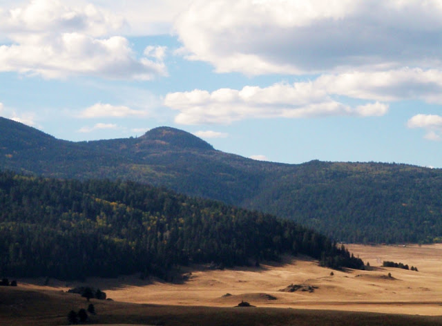 We have been wanting to visit these mountain slopes a ways north of us for some time. It's a preserve in the heart of an ancient super volcano, filled with elk herds, and the perfect setting for a few westerns shot here. (The Missing, with Tommy Lee Jones.) Sometimes referred to as the Yellowstone of New Mexico, it's the beautiful Valles Caldera in the Jemez Mountains.