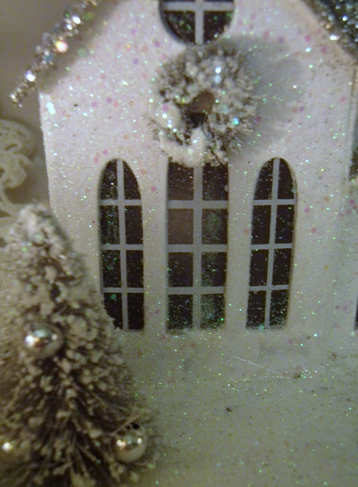 the pink and white is so lovely, the glitter house and flocked Christmas trees are my favorites! The whole setting is so delicate and magical! You did an amazing job on putting it together!