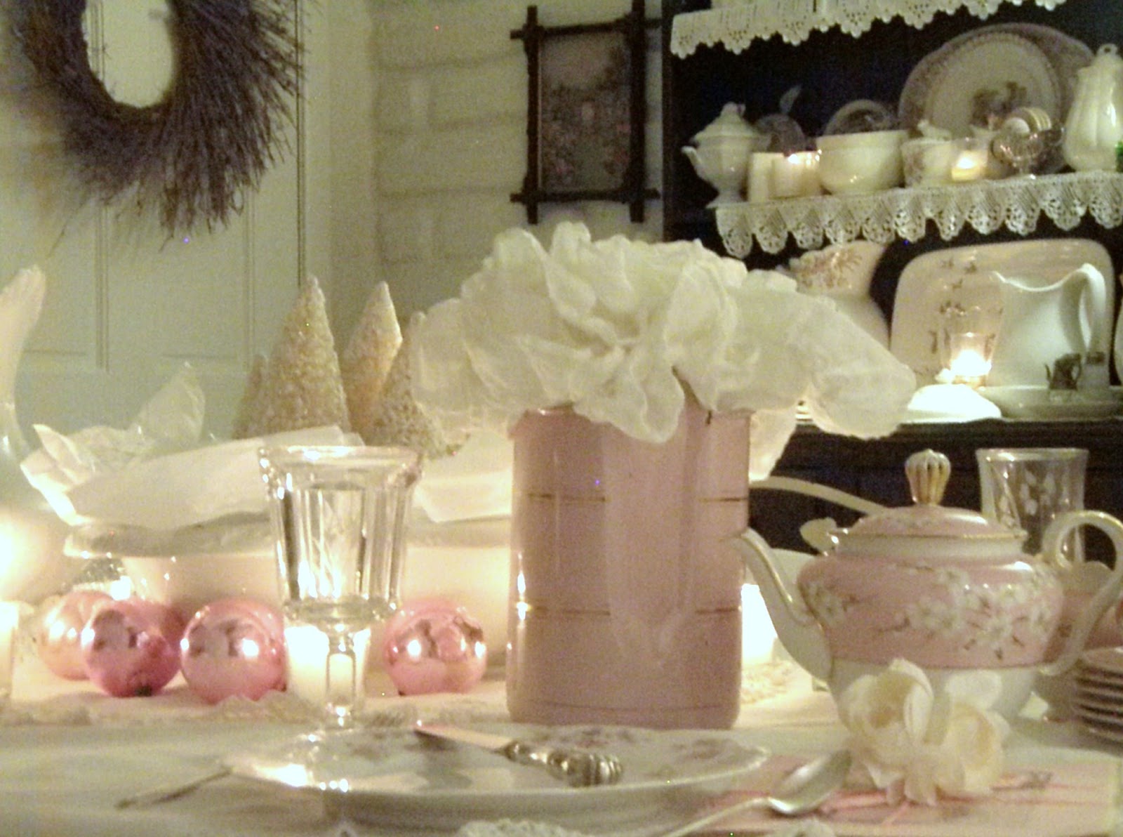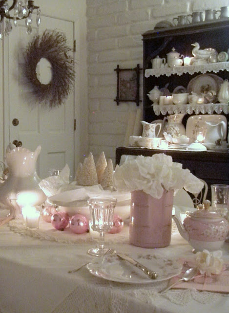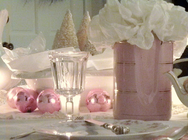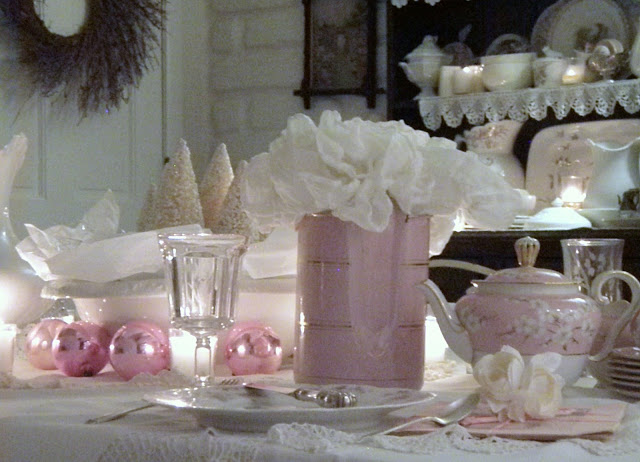 Love your beautiful pink tablescape. Everything is so delicate and sweet, yet full of Christmas charm and warmth. It looks so inviting - wish I could come right over and join you.