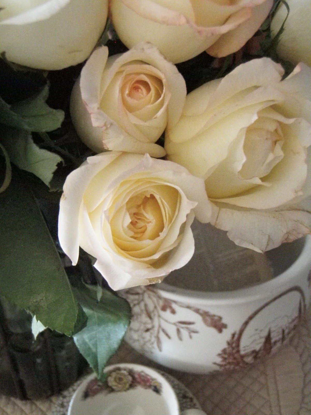 Hm~m~m.. .that phrase "mild temorary insanity" would be a "Custom Fit" for the present time On Crooked Creek!!! Gave me a chuckle this morning, dear friend! How exquisite are your photos!!! Quite smitten, I am, with your fluer~de~lis cup and saucer! Yes...it's ironing day for the new linens have arrived for the Master Bedroom! Ready to complete the final pages of this make~over and move onto the next "midly temporary insane" project with much ado!!!