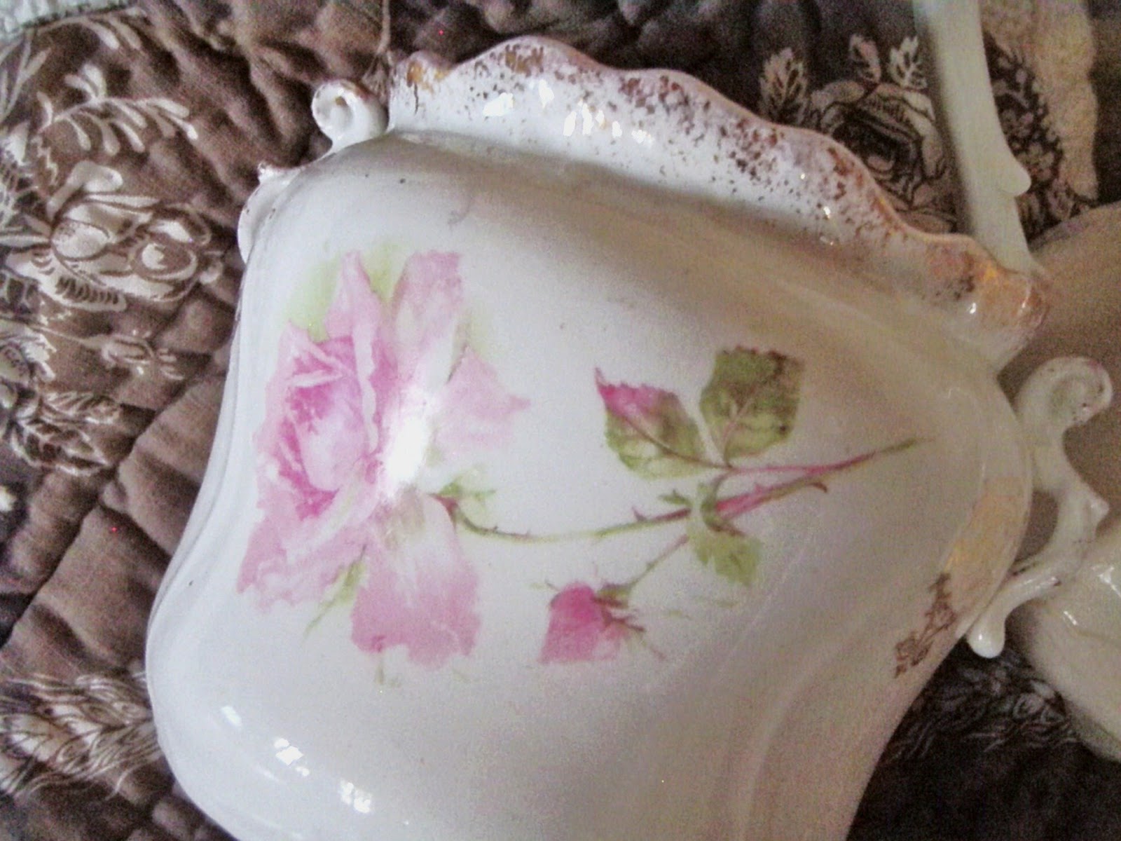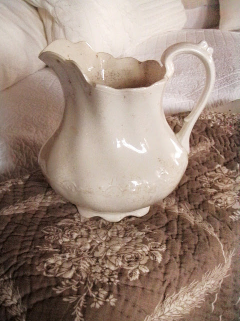 What beautiful finds. Love the old crazed and crackled pitcher. My Mom and I always disagreed over old pieces. I loved the crackled effect and she didn't. To me, it gives so much character.