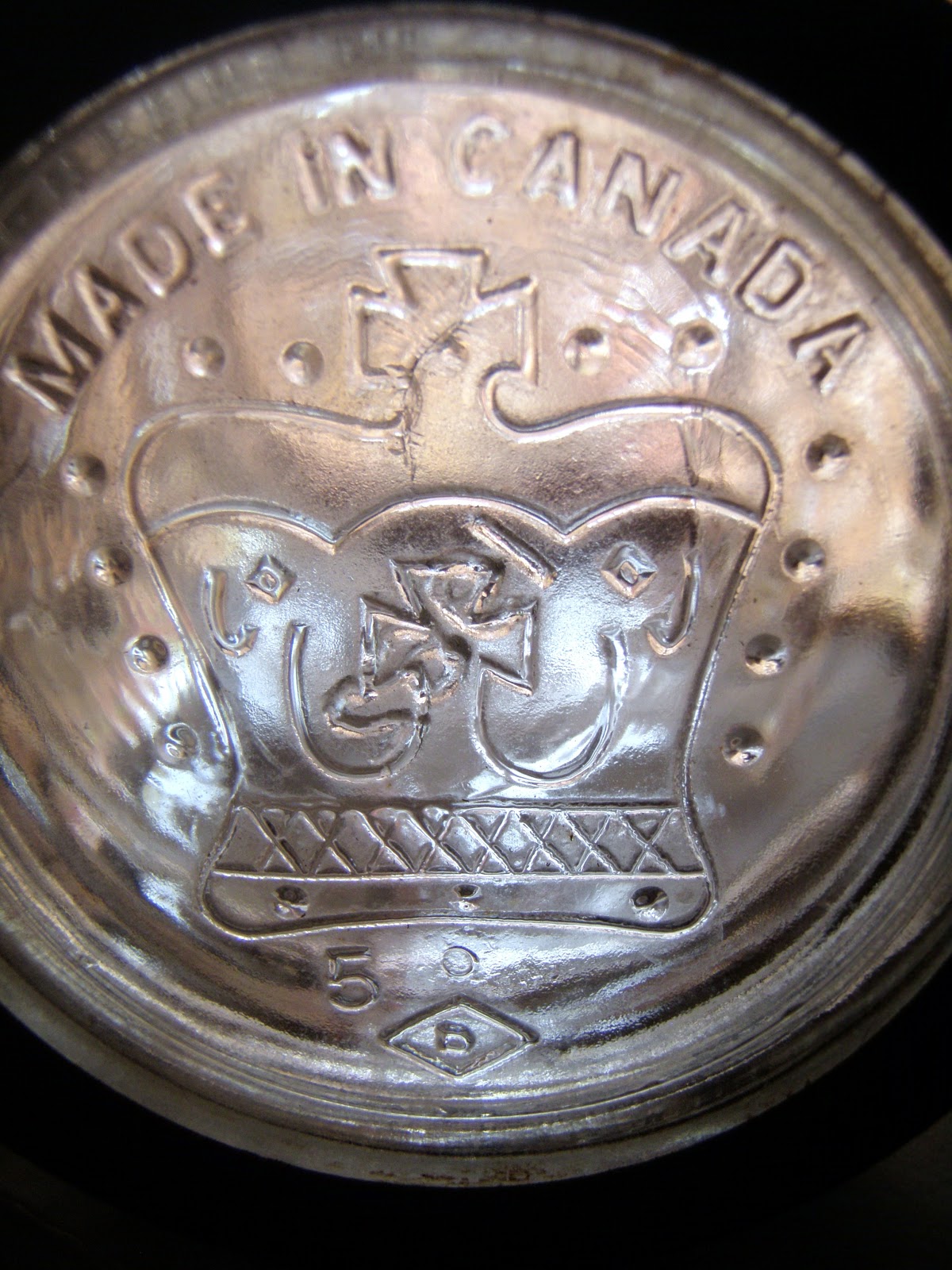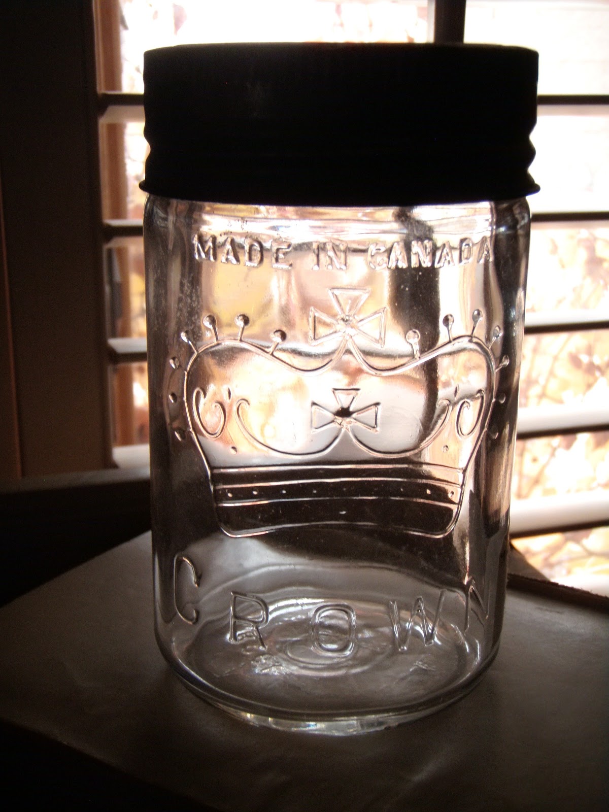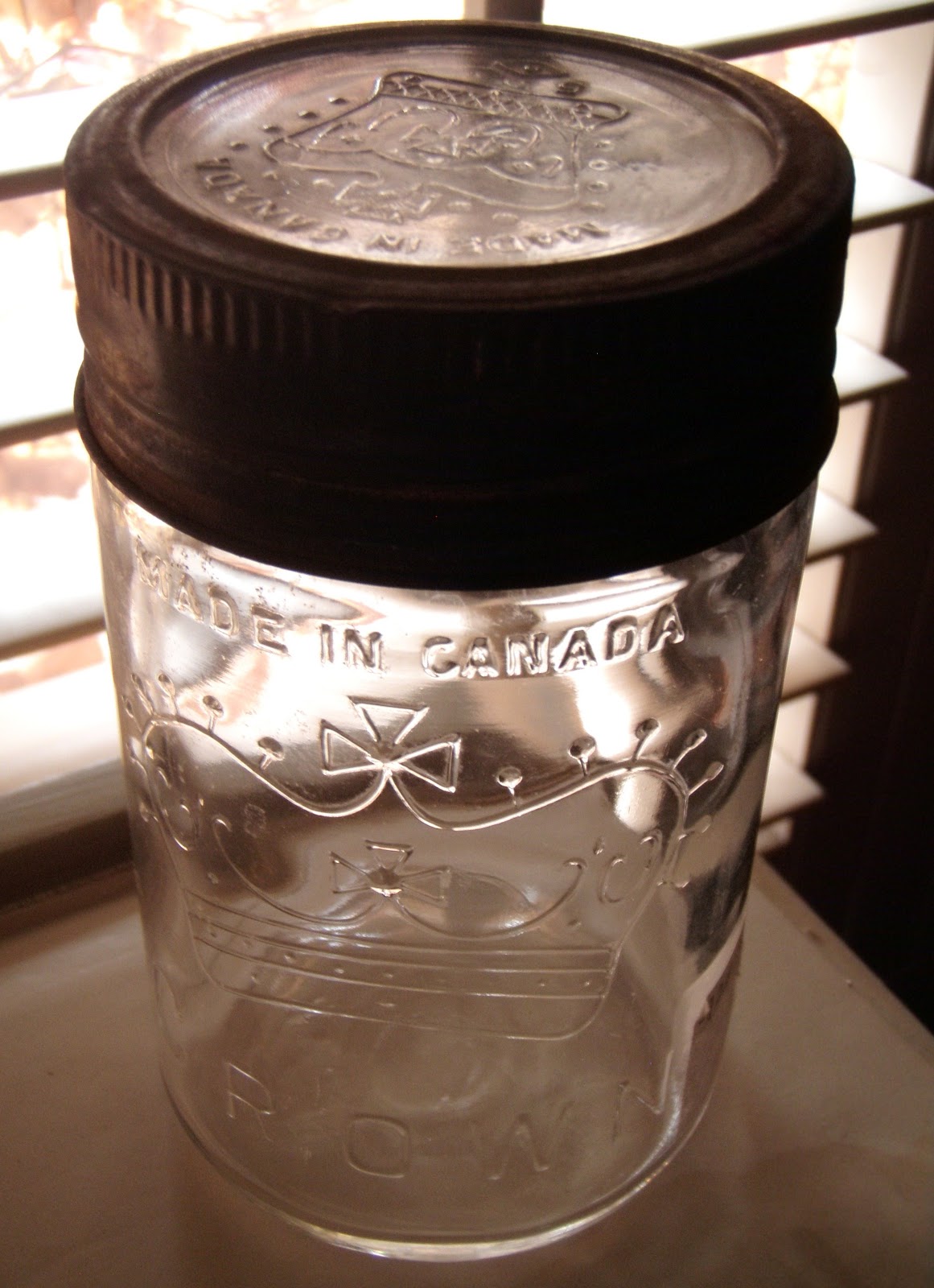 Crowns and roses. Lovely! I have a Crown jar which is aqua and it has the zinc ring and glass cover. However, it doesn't say Made in Canada. The little pitcher is very pretty. I found some treasures this weekend but they were a lot more than $10.!!